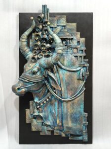 The present series incorporates his creative and innovative sculpture on bulls, horses, spiritual icons, idols etc in Bronze & FRP. The special features of his work are the superb finesse and textural finish for the creative endeavors in his unique creative style. They transcend form and materials in addition to very essence of human experience. Using both traditional techniques and contemporary sensibilities he has created these sculptures which duly explore the delicate balance between nature, culture and identity in apt perspectives. These innovative works are not only captivating, eye catching and lucid but also eloquent and creative in their own way. These in turn, share a dialogue with the viewers and onlookers leading to their warm response and due appreciations. His thoughtful and superb innovations soon leave their indelible impact on all leading to their applauds and positive response.
