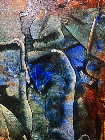 His compositions recall the disciplined clarity of hard-edge abstraction, yet they resist its doctrinaire coolness. Unlike the mathematically assertive geometries of artists such as early Bauhaus painters, Hadole’s planes feel lived-in. They are not declarations; they are settlements. The edges meet without aggression, and colour behaves less like a system and more like a mood. This places his work closer to artists who softened geometry through experience, where colour interaction became psychological rather than purely optical, like Josef Albers.