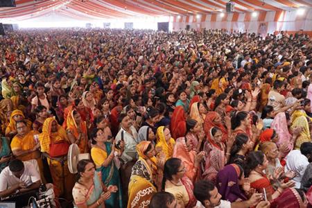 The sacred presence of renowned storyteller Rajan Ji Maharaj and the gathering of lakhs of devotees turned Pratapgarh into a place of divine celebration.