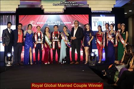 Following the tremendous success of the Mr Miss & Mrs Royal Global King & Queen from 2021 through 2024, Dr. Neelam Paradia, in collaboration with The Topaz Events and with the unwavering support of her husband, Mr. Kalpesh Paradia, triumphantly hosted the Mr Miss & Mrs Royal Global King & Queen 2025, along with the Royal Global Achiever Awards Season 5. This year also marked the exciting launch of the Royal Global Couple Pageant, held on the 21st and 22nd of June 2025 at Club Emerald in Mumbai (India).