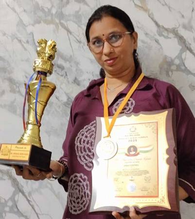 Her remarkable contributions have been recognized with several honors, including the National Artisan Award by Rotary Club of Barshi, the Rising Star Award from Shraddha Institute, the Ganit Guru Ratna Award by Skill Education, and the prestigious Bharatiya Gaurav Award. She also established the first Vedic Mathematics branch in Barshi.